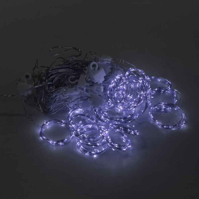 600 светодиодов работают от низкого напряжения 5 В, что делает гирлянду максимально безопасной для использования внутри помещений. Диоды практически не нагреваются, поэтому её можно располагать рядом с тканями, шторами или декорациями.