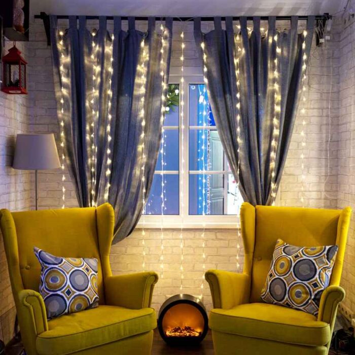 Размер гирлянды 6×3 м делает её полноценным элементом оформления. Она способна закрыть стену, витрину или создать эффектную фотозону. Если маленькие гирлянды подходят лишь для точечного акцента, то этот занавес работает как самостоятельная декорация, instantly преображающая пространство.