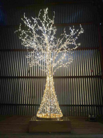 Световая фигура «Золотое дерево» — это универсальное решение для оформления городского пространства, бизнес-центров, торговых зон и площадей. Стильная и узнаваемая, она притягивает внимание и создаёт атмосферу тепла, уюта и торжественности. Особенно эффектно смотрится в зимний период, но может использоваться и в межсезонье как самостоятельный арт-объект.