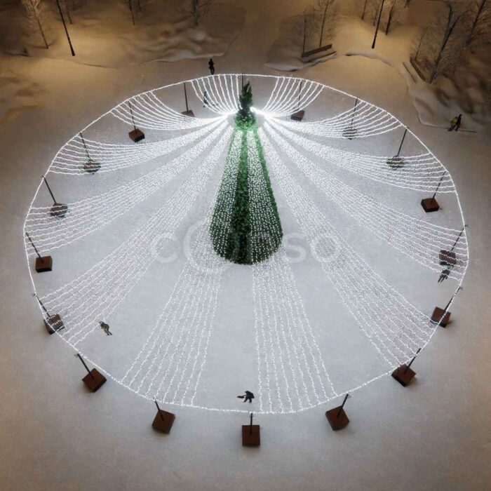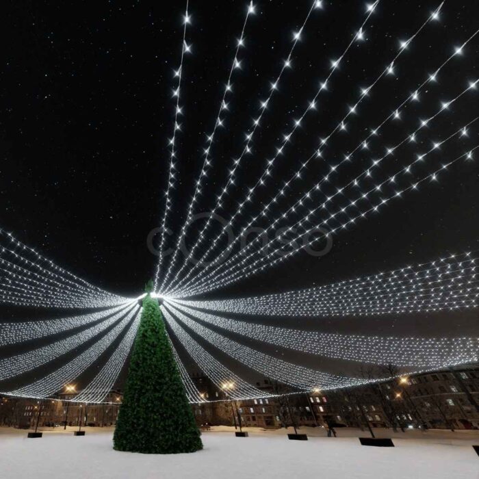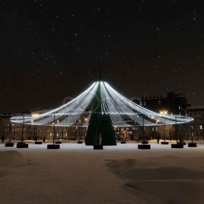 Яркое звездное небо – отличный вариант, что бы дополнить украшение площади к Новому году.