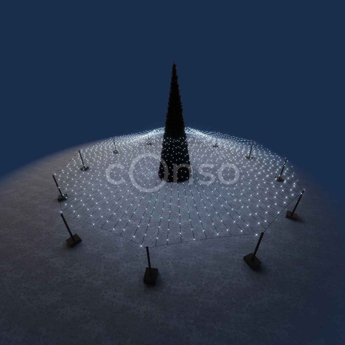 Яркое звездное небо – отличный вариант, что бы дополнить украшение площади к Новому году.