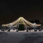Яркое звездное небо – отличный вариант, что бы дополнить украшение площади к Новому году.