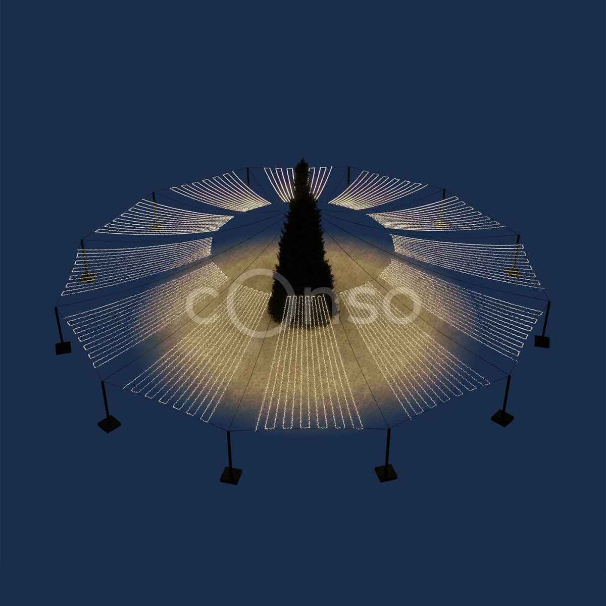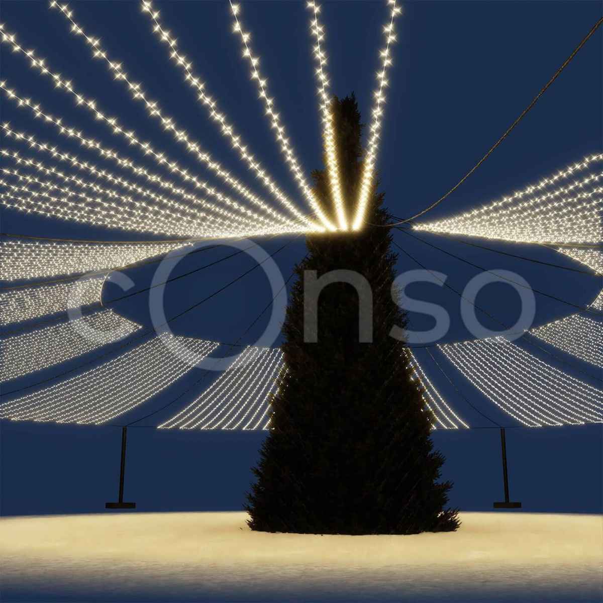 Яркое звездное небо – отличный вариант, что бы дополнить украшение площади к Новому году.