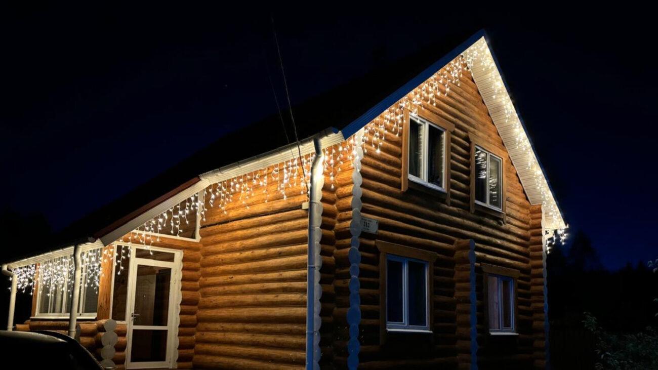Дом из бруса с подсветкой в Наро-Фоминске
